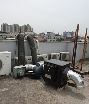 설치 공간이 협소할때 용이한 스탠드형 집진기입니다. 음식점에서 각종 요리를 조리하는 과정에서 발생하는 연기를 대기중으로 배출할 때, 연기속에 포함되어 있는 유해물질을 제거하여 생활환경을 청결하게 할수 있도록 만든 특허 받은 음식점 전용 집진기 입니다.