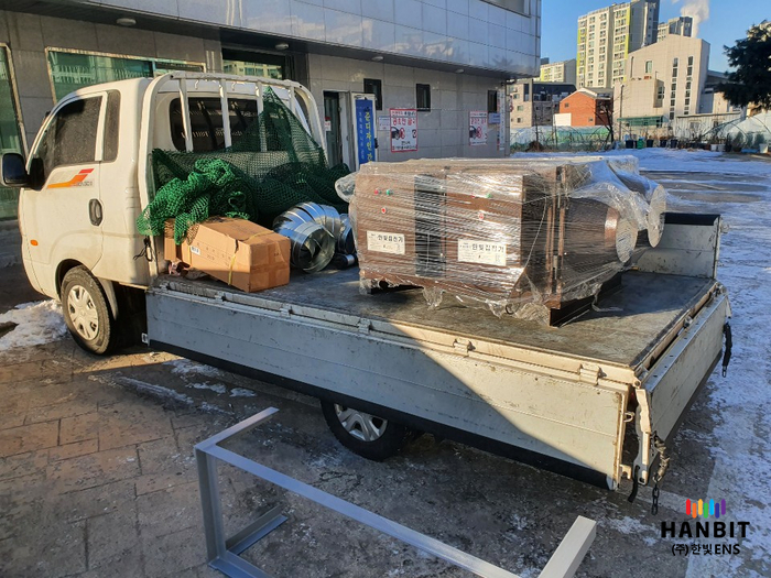 아침일찍 한빛집진기 본사 공장에서 제작된 집진기를 실어 현장으로 이동했습니다.