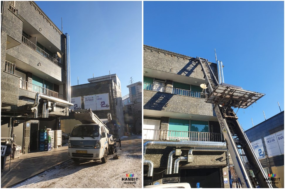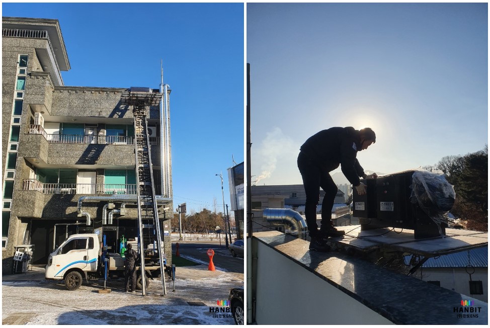 한빛에서는 고기집 운영시간을 피해 낮에 집진기 설치를 진행했습니다.